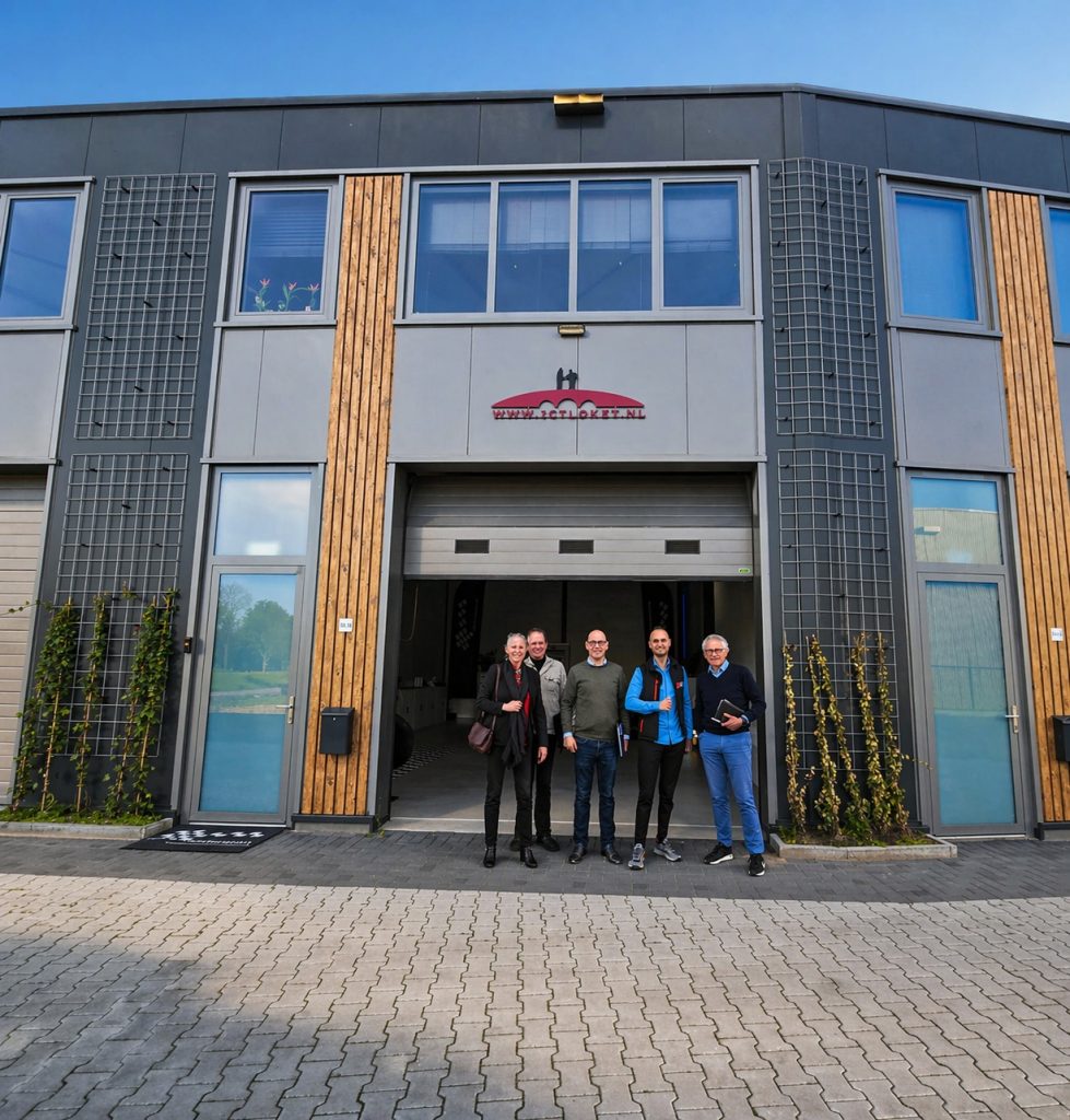 Afbeelding kantoor en eventlocatie ICTloket.nl Maastricht-Airport met diverse deelnemers en Aaron Mulder (directeur ICTloket.nl)